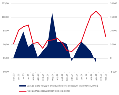 Согласно макроэкономическому опросу Банка РФ от февраля 2025, в течение 2025 года средний обменный курс составит 104,0 рубля за доллар.